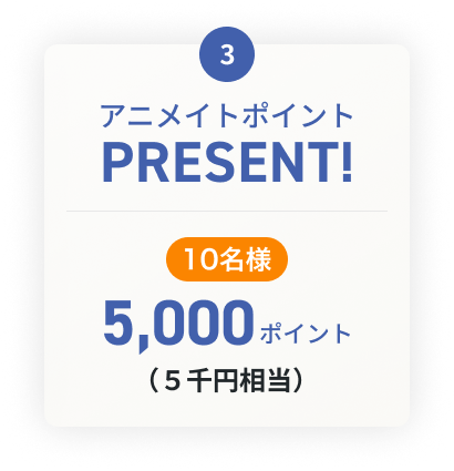 AGOに会員登録をしていただいた方の中から抽選で13名の方に最大5万円相当のアニメイトポイントをプレゼントいたします。